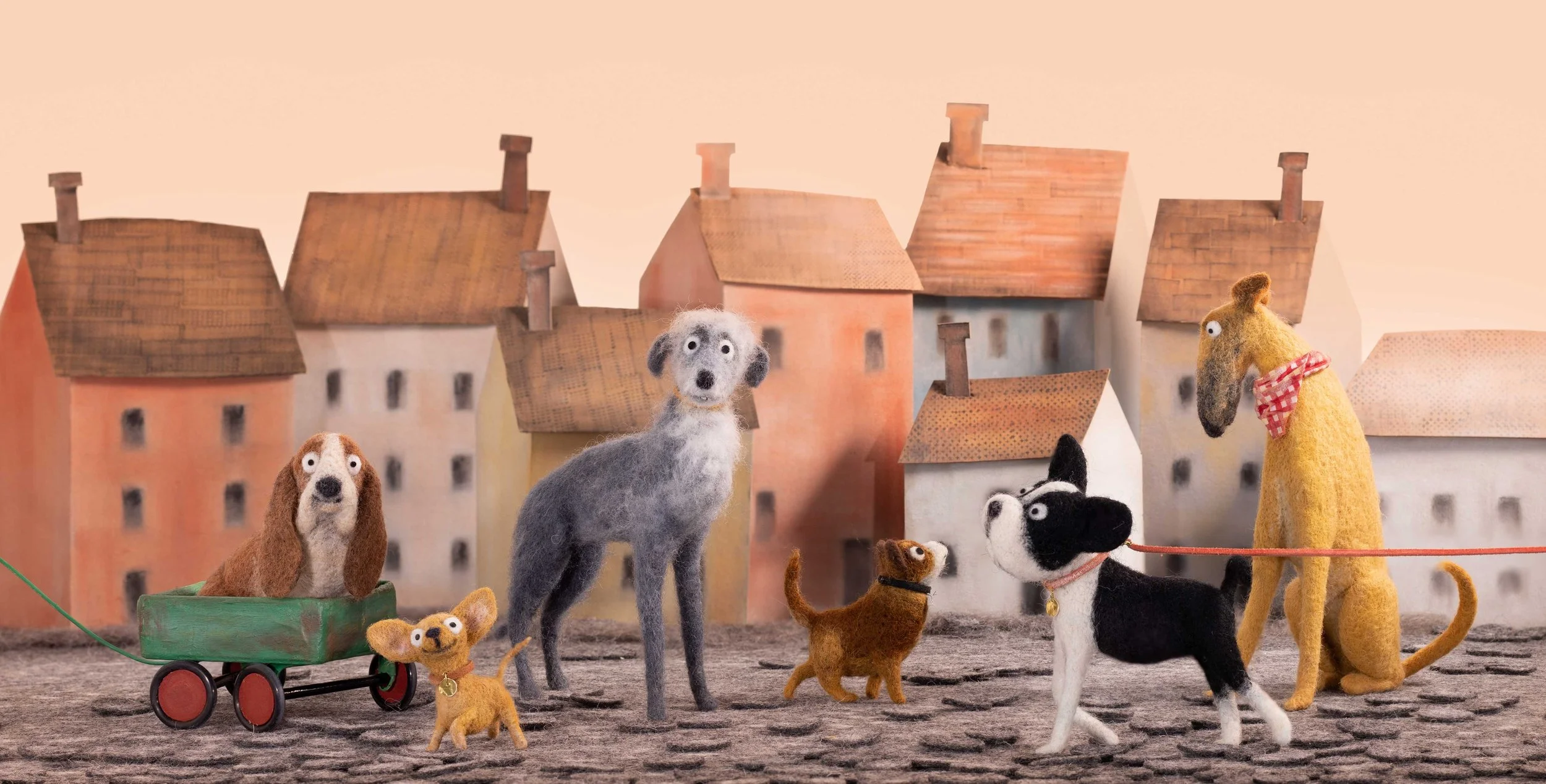 I also had to get inventive with the scenery, building houses from cardboard, laying down faux fur fabric for grass, and adding touches of papier-mâché here and there. The mix of textures, carefully crafted details, and the soft glow of specialty lights created visuals that feel playful and unique.
